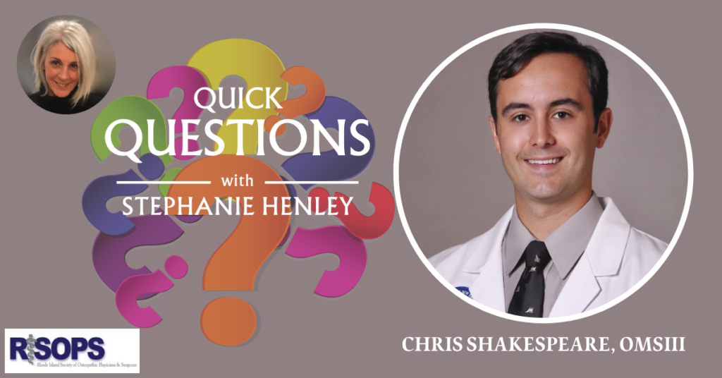 CS: I grew up in Johnston, Rhode Island. My first exposure to emergency medicine was as a volunteer EMT and firefighter in Glocester, a rural, medically underserved community where the difference between a good outcome and a bad one often came down to who showed up first and how well they were trained. RISOP represents the physicians who serve communities like that. Being part of this association means investing in a pipeline of osteopathic physicians who are committed to Rhode Island and making sure the students coming up behind me have the mentorship and support to get there.